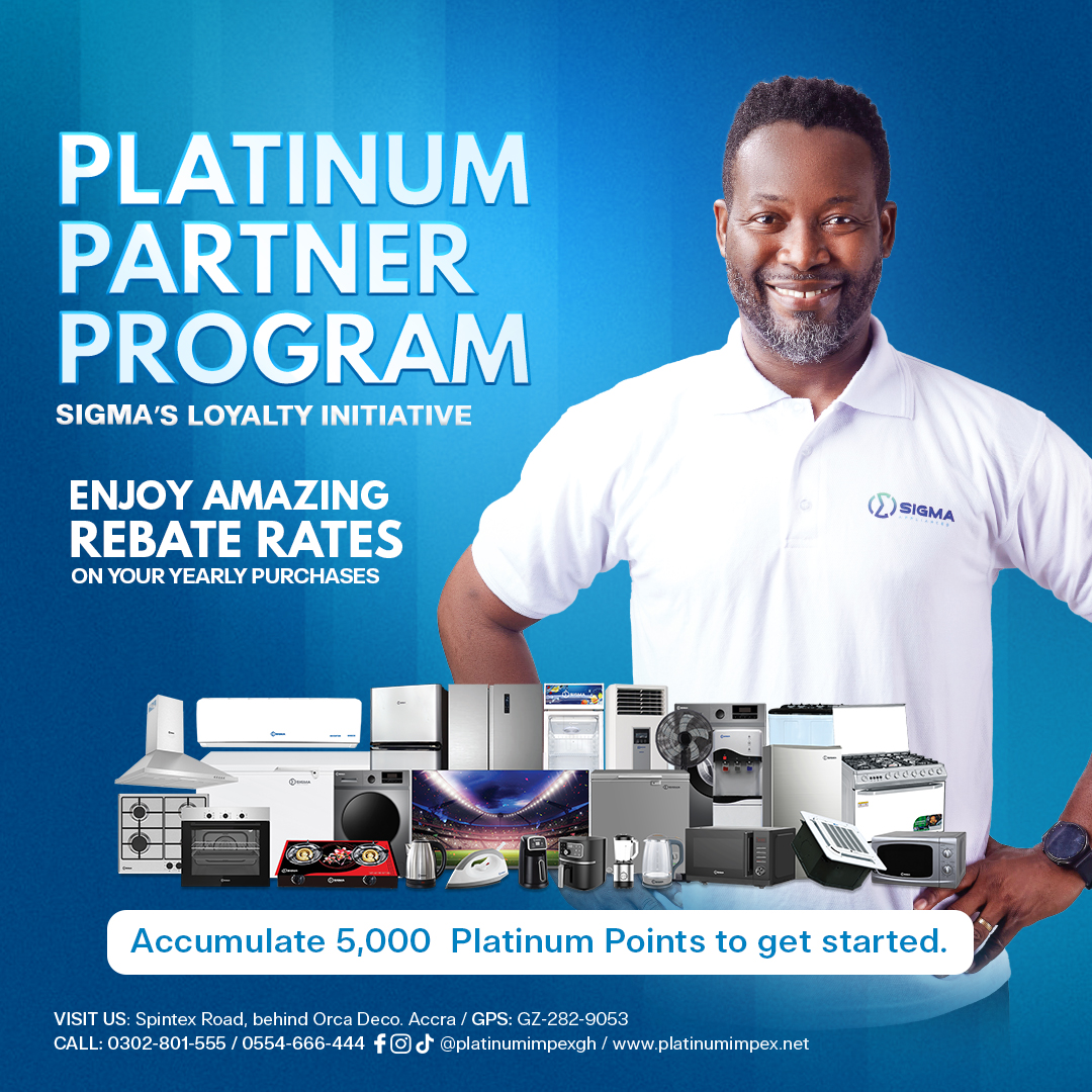 - GHS 100 spent on purchasing Sigma Appliances = 1 Platinum Point