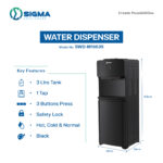 • 3 Ltrs Tank • 1 Tap • 3 Buttons Press • Safety Lock • Hot, Cold & Normal • 6% • Black