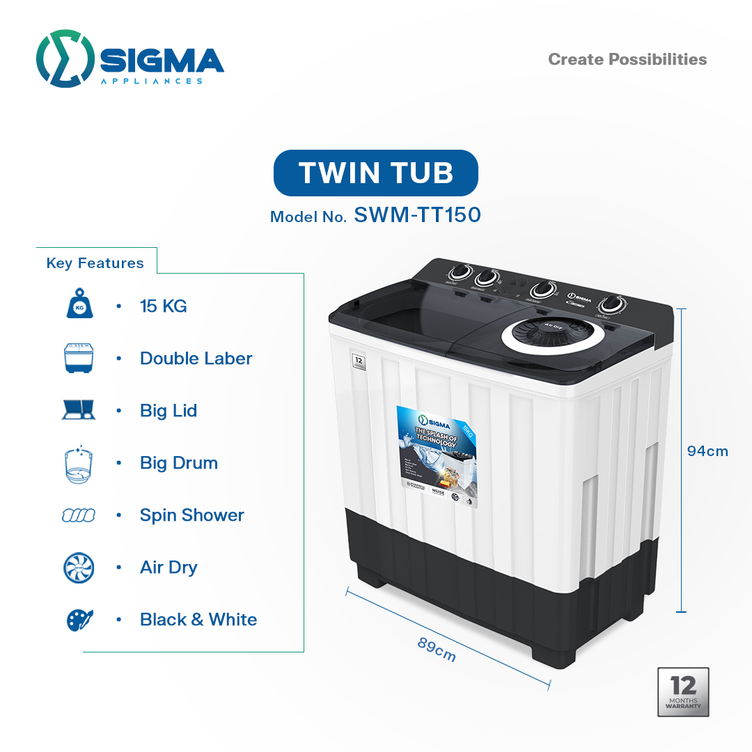 PUMP, BIG LID, DOUBLE LABER, AIR DRY, SPIN SHOWER, WASH BOARD, ENERGY EFFICIENT,BLACK & WHITE