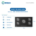 90CM-5 GAS BURNER-AUTO IGNITION-CAST IRON-BLACK GLASS MIRROR