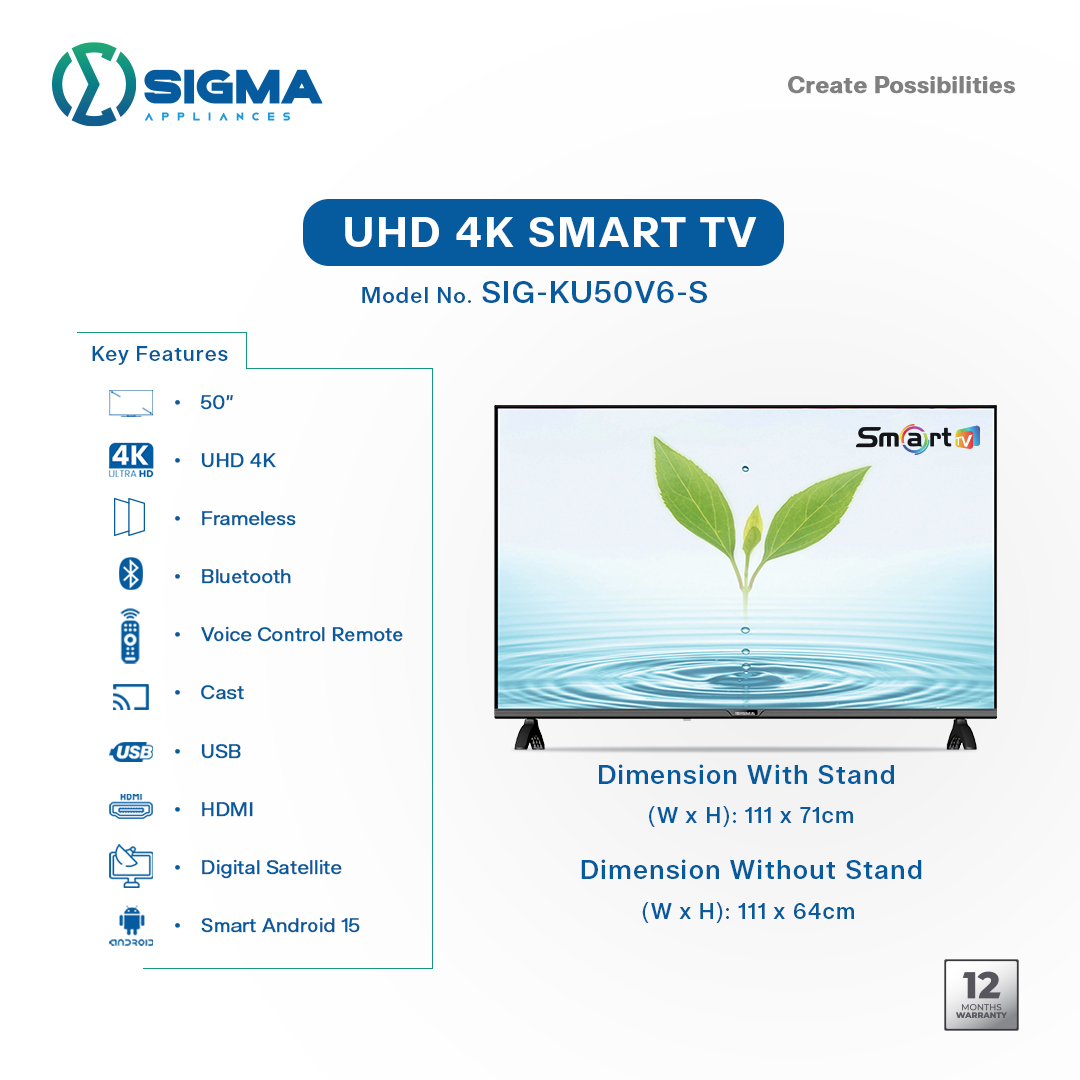 UHD, 4K, SMART ANDROID 15, BT, WIFI, FRAMELESS, DIGITAL, SATELLITE, WALL MOUNT BRACKET INCLUDED
