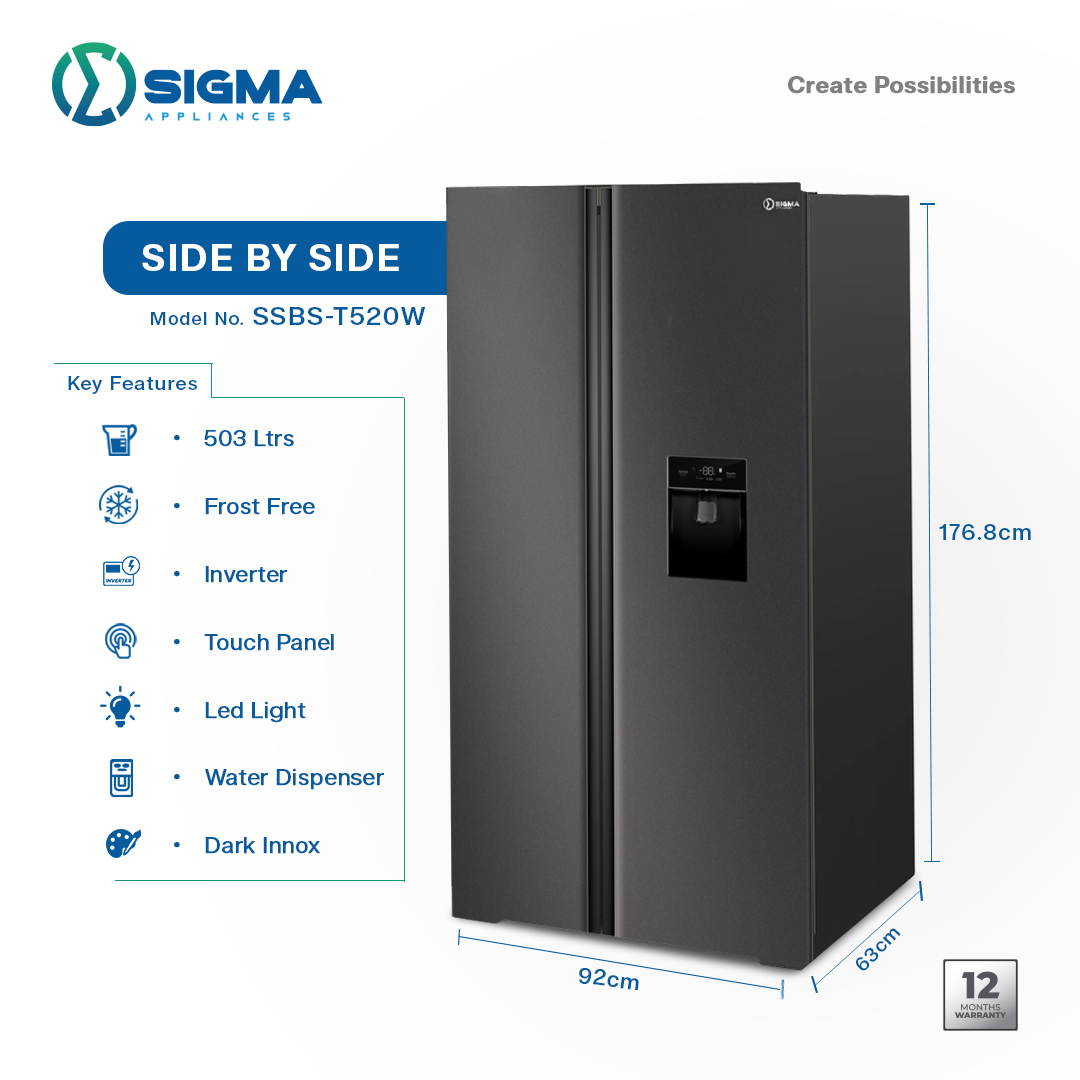 FROST FREE,INVERTER, TOUCH PANEL, LED LIGHT, WATER DISPENSER, DARK INOX