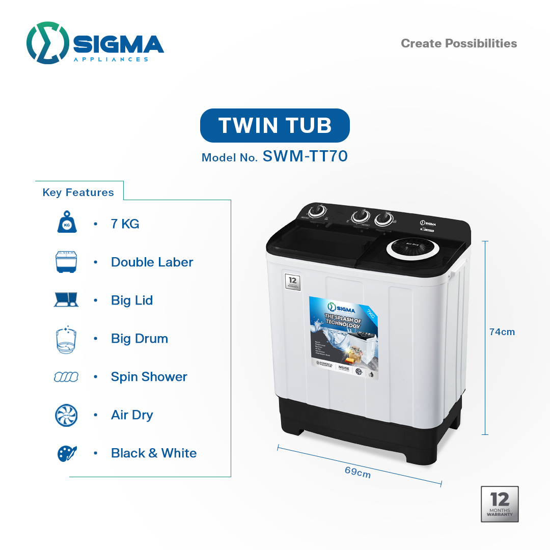 PUMP, BIG LID, DOUBLE LABER, AIR DRY, SPIN SHOWER, WASH BOARD, ENERGY EFFICIENT, BLACK & WHITE