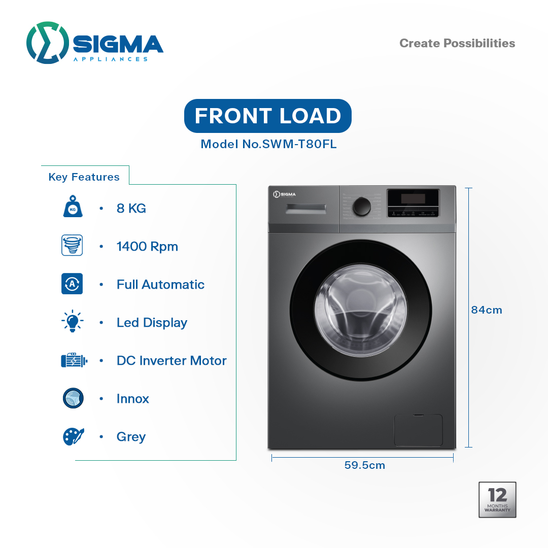 8 KG 1400 rpm – FULL AUTOMATIC – LED DISPLAY – 16 PROGRAMS – DC INVERTER MOTOR – INNOX