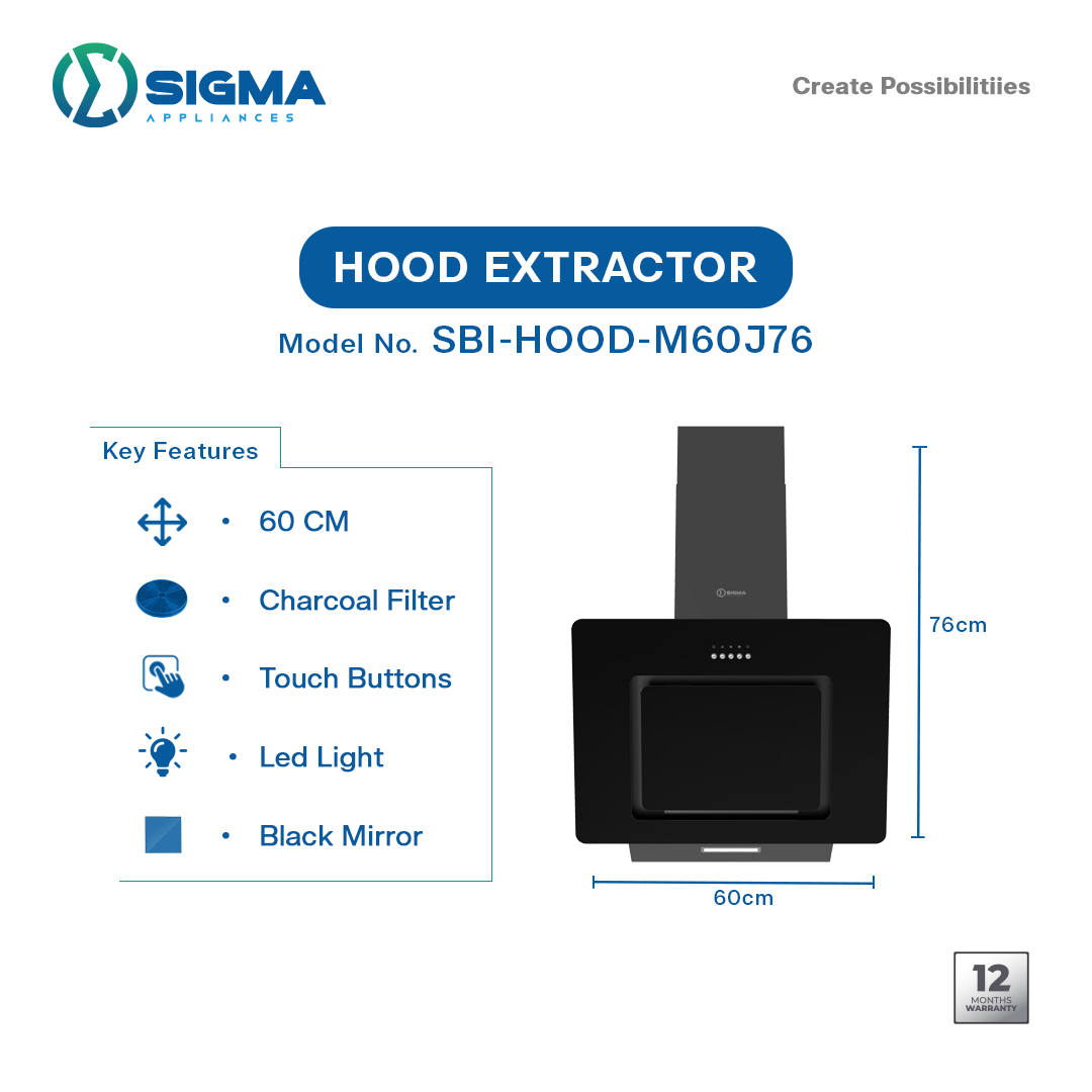ANGLED TYPE-CHARCOAL FILTER-TOUCH BUTTONS-LED LIGHT-BLACK MIRROR