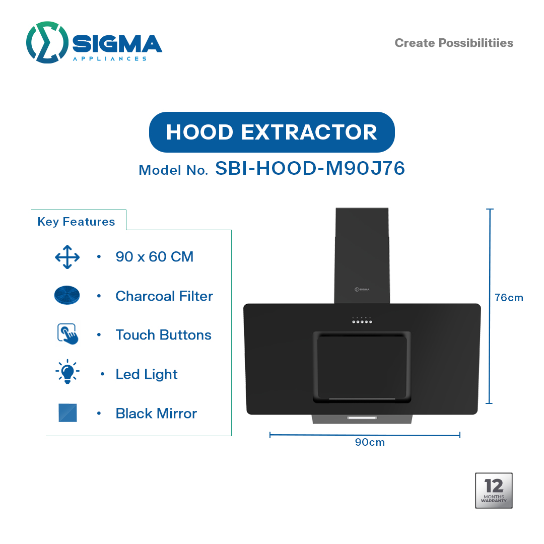 ANGLED TYPE-CHARCOAL FILTER-TOUCH BUTTONS-LED LIGHT-BLACK MIRROR