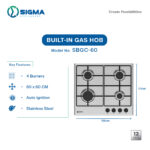 60X60CM-4 GAS BURNER-AUTO IGNITION-STAINLESS STEEL