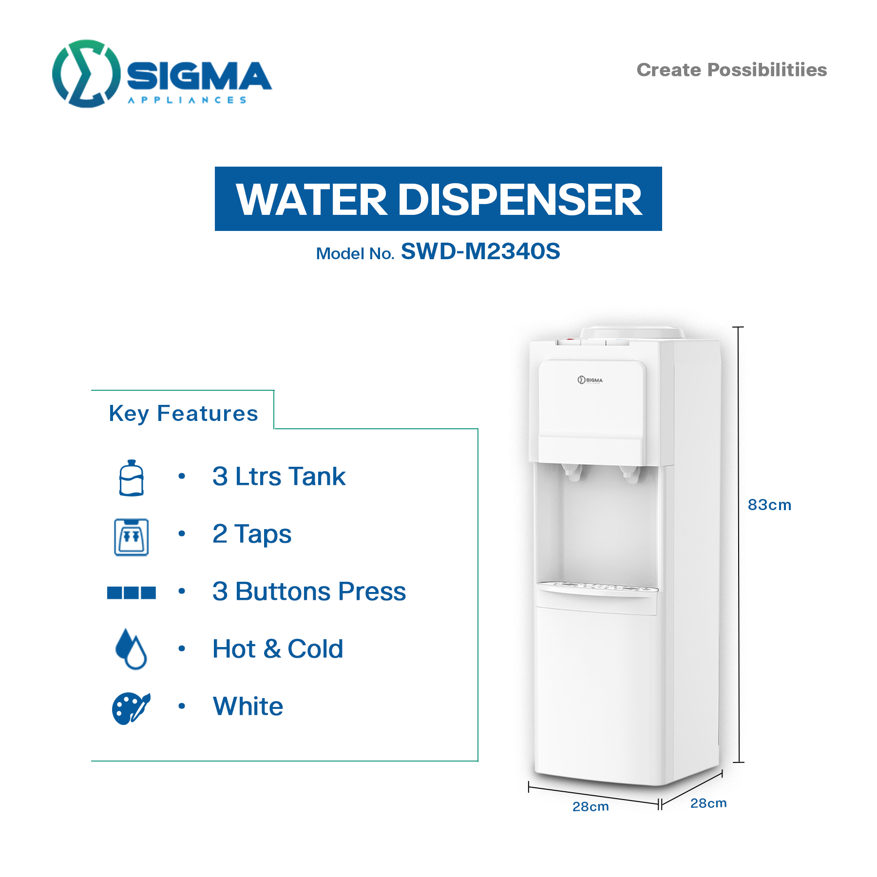 3 Litres Tank 2 Taps 3 Buttons Press Hot & Cold White Colour